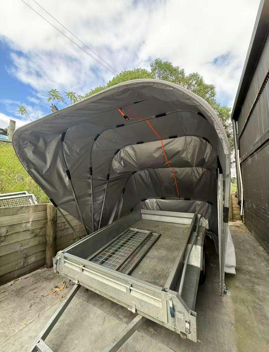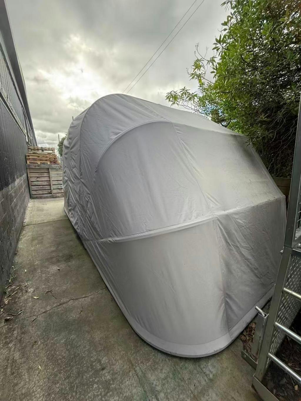 The Grey Tent Garage features a stylish shell design that’s easy to open and close, offering a unique look compared to standard carports. Measuring 600 × 270 × 250 cm, it provides spacious coverage for cars, motorcycles, equipment, or outdoor activities.