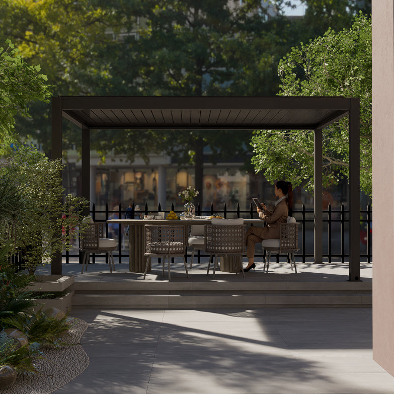 Crafted from strong aluminum with reinforced structural profiles, it delivers exceptional durability and year-round reliability. Built to tolerate strong winds and heavy snow loads, it offers a solid, premium outdoor structure that blends durability with clean architectural aesthetics.