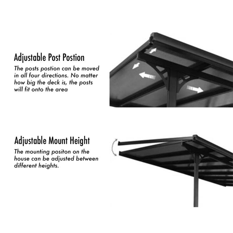 Dark Grey coloured frame with clear 8mm polycarbonate roof.