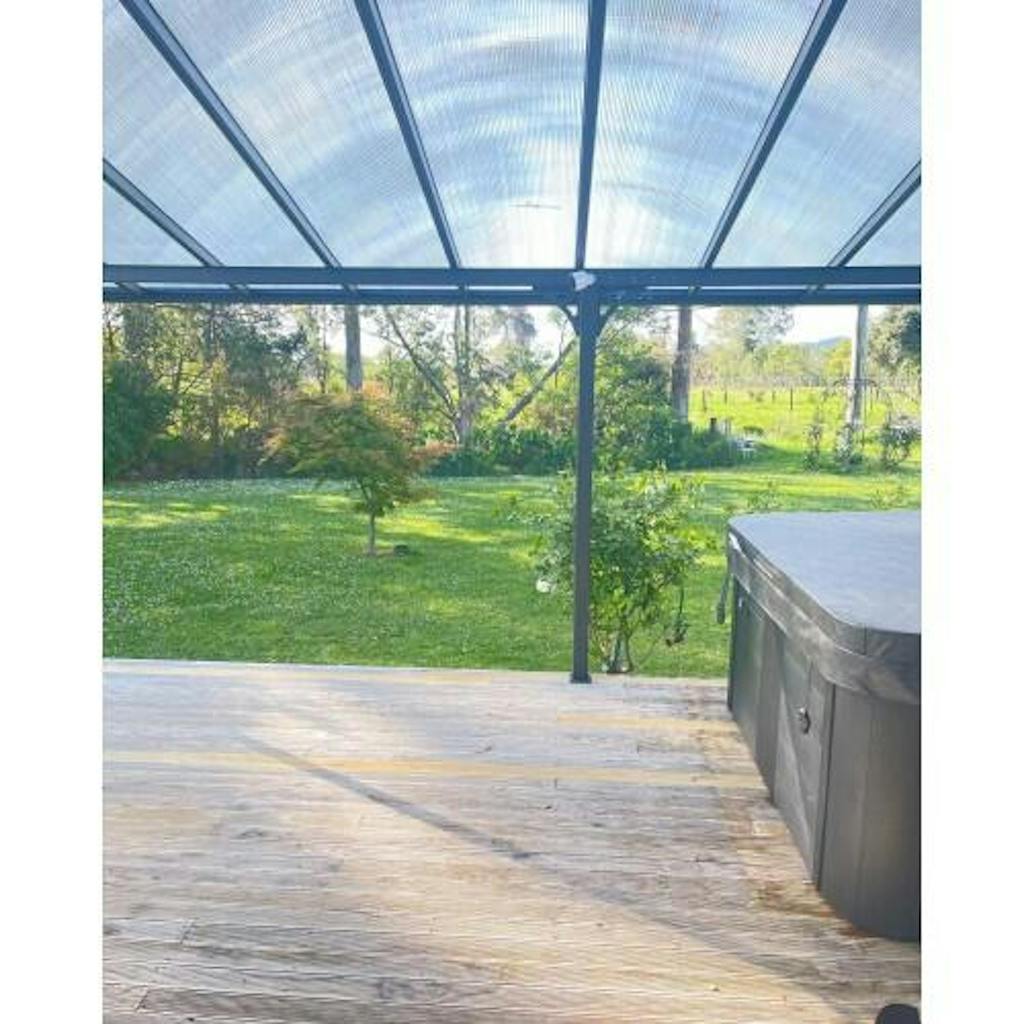 Dark Grey coloured frame with clear 8mm polycarbonate roof.
