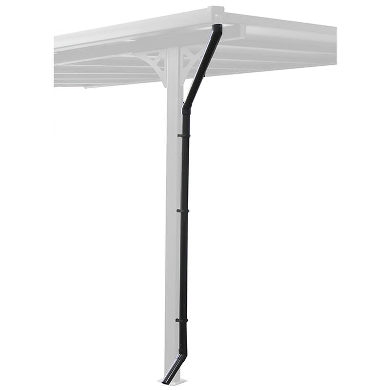 Kit contains 2 sets of downpipe. Steelmates patio has spouts on both ends of gutter.